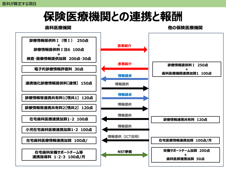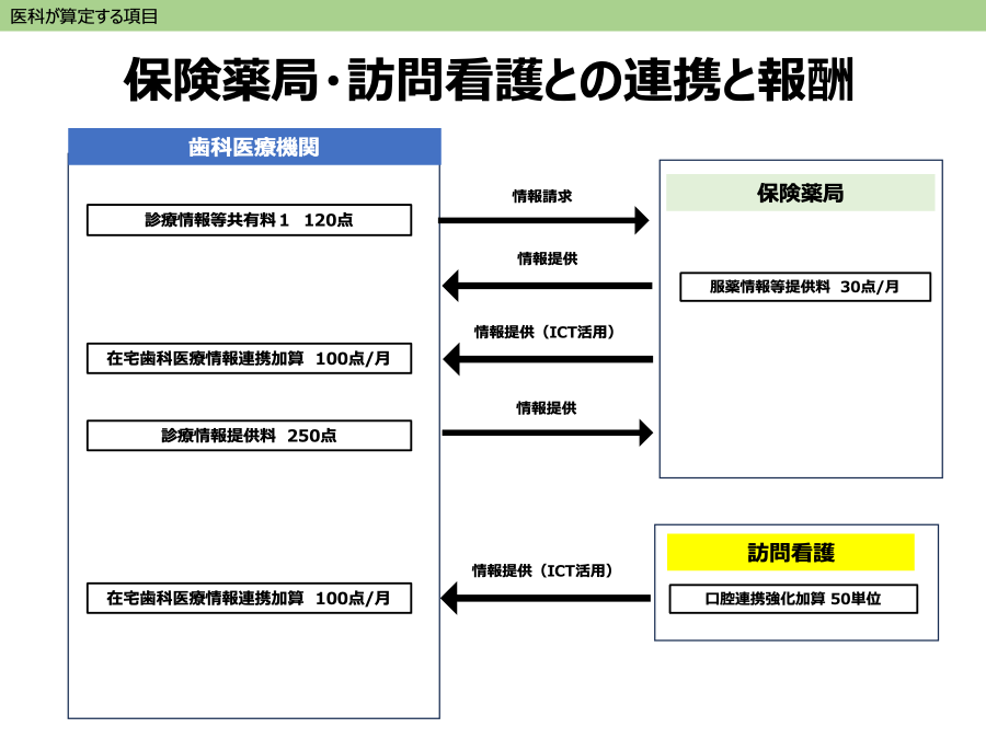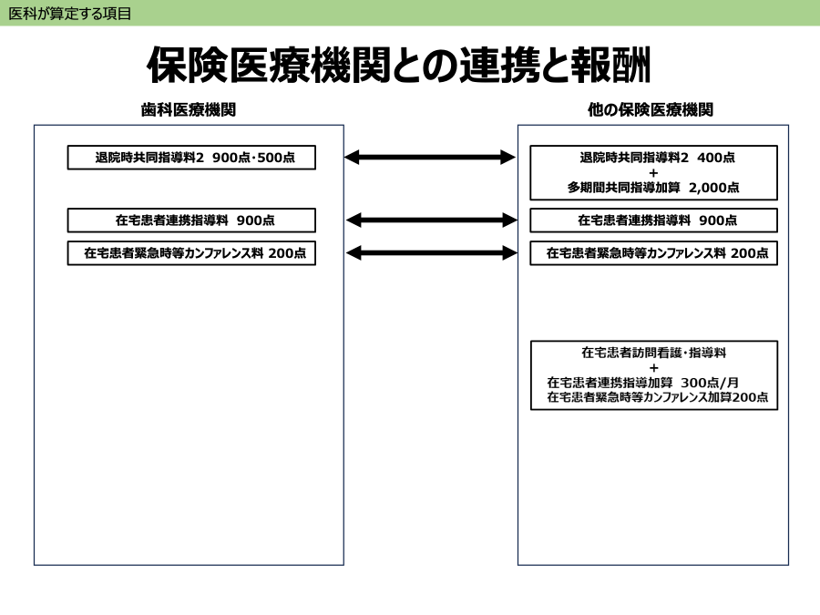 2024年の診療報酬改定では、こうした連携関連の報酬項目がより体系的に整理され、歯科と医科の協働を促す構造が強化されました。訪問歯科においては、こうした制度を「知っているかどうか」で、医療機関同士の信頼の築き方にも差が出てきます。